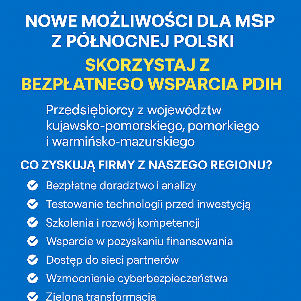 Nowe możliwości dla MŚP z północnej Polski – skorzystaj z bezpłatnego wsparcia PDIH!